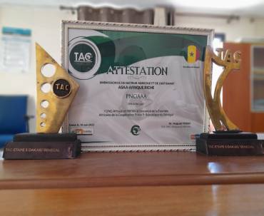 La Nuit du Mérite Africain du 18 juin 2022 organisé par la TAC-Ragée (Tournée Africaine de la coopération) au Grand Thêatre de Dakar. Cérémonie de Remise de prix au grand thêatre avec les membres de la PNOAAA . Ces derniers ont reçu leurs attestions par le biais de Serge Ibrahima Malou (le directeur du financement et du partenariat avec les organistions au ministère de l'agricutre et de l'équipement). La PNOAAA et sa présidente Oumoukoulsom Ndoye ont également reçu un prix. Nous remercions tous les membres de la PNOAA, de la TAC, les personalités et tous ceux qui étaient présents lors de l'événement.